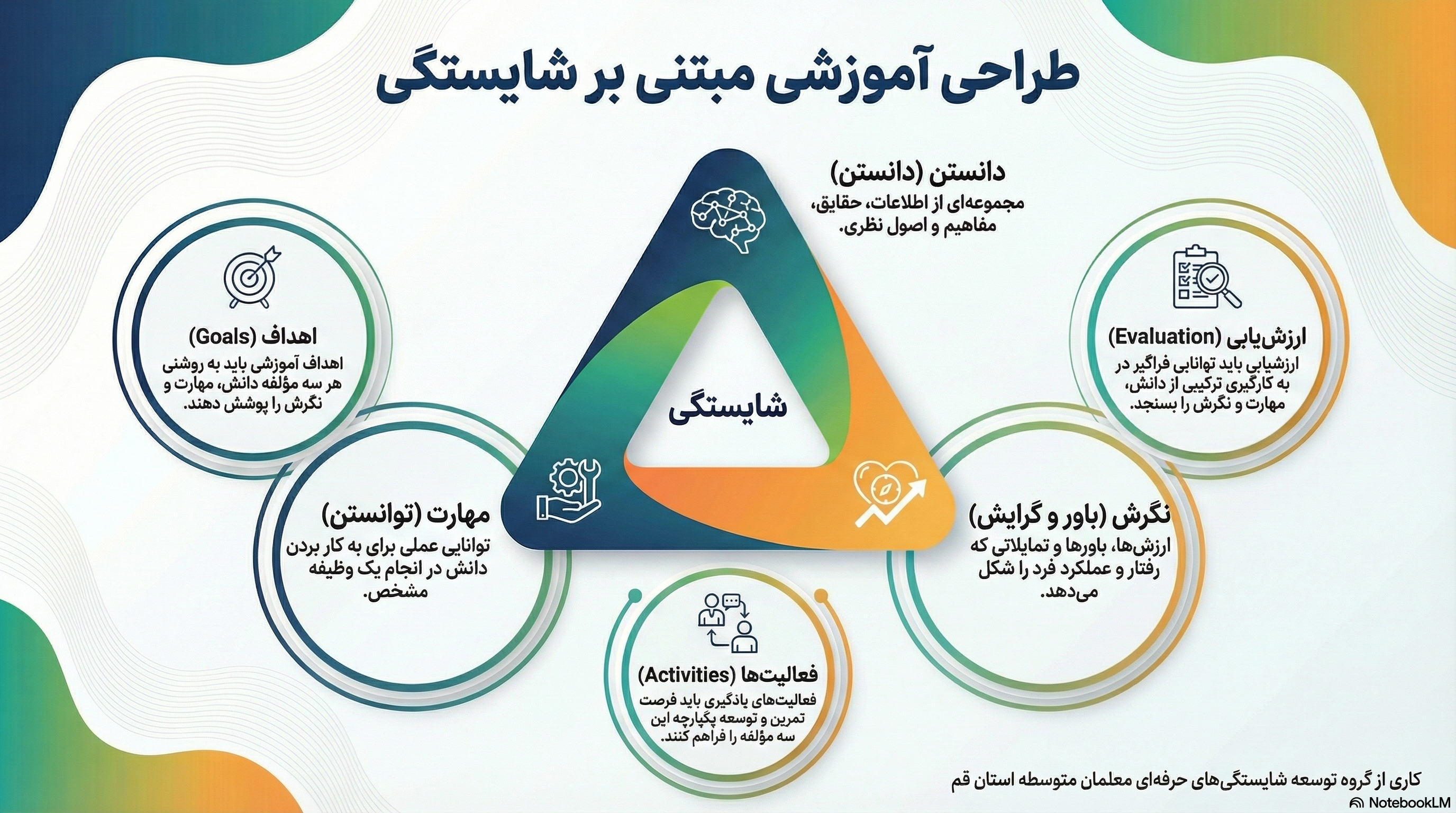 مثلث شایستگی معلمان" به مدلهای چندبعدی اشاره دارد که صلاحیتهای معلم را در سه حوزه کلیدی میسنجد: دانش تخصصی (محتوا)، مهارتهای تربیتی (پداگوژی و روانشناسی) و شایستگیهای فناوری/دیجیتال،