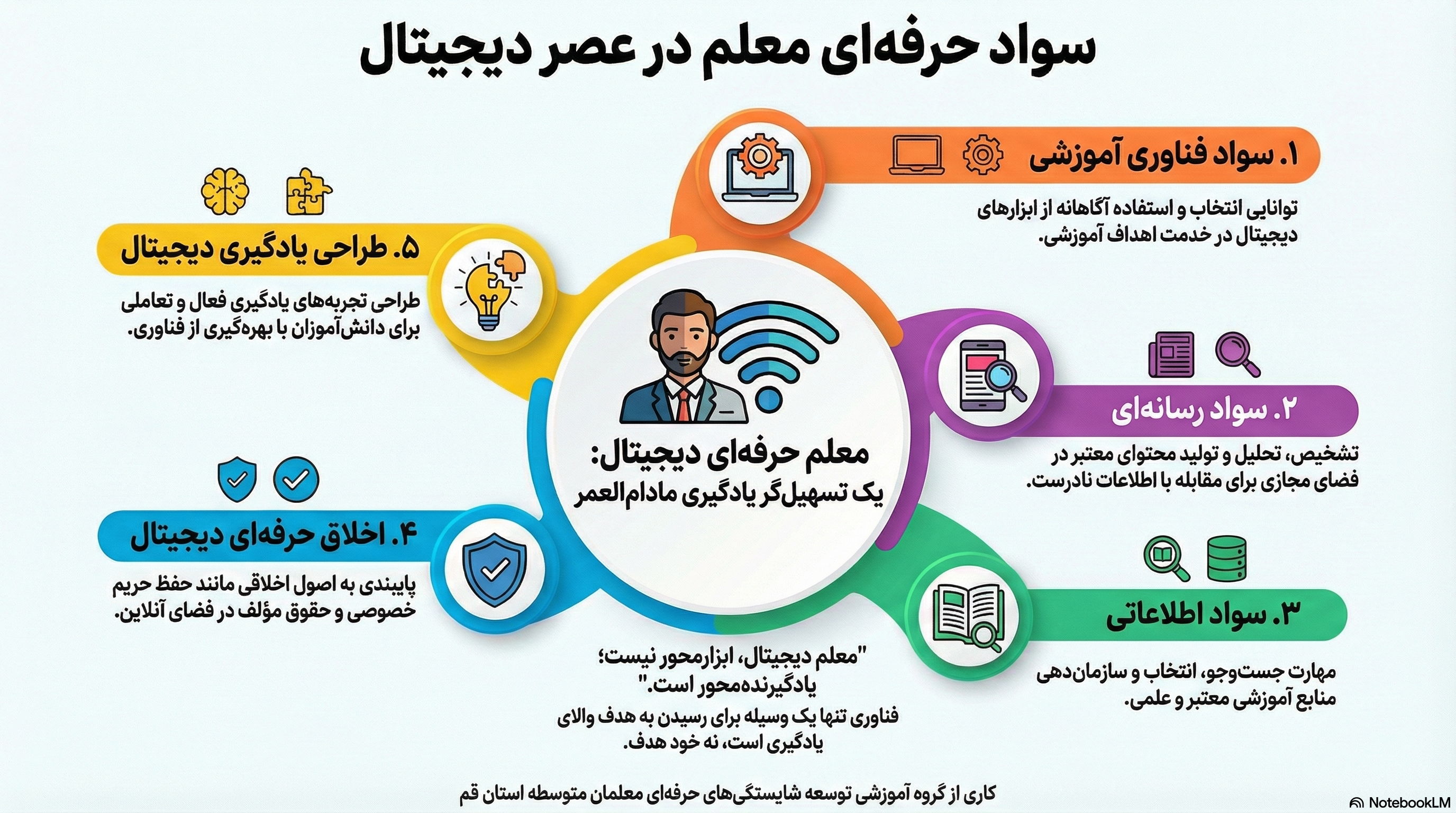 سواد حرفه ای معلمان منتشر شده در پنج شنبه, 12 دی 1404 00:15 پنج بعد اصلی سواد حرفه ای معلمان در عصر دیجیتال شامل چه تخصص ها و مهارت هایی میشود؟