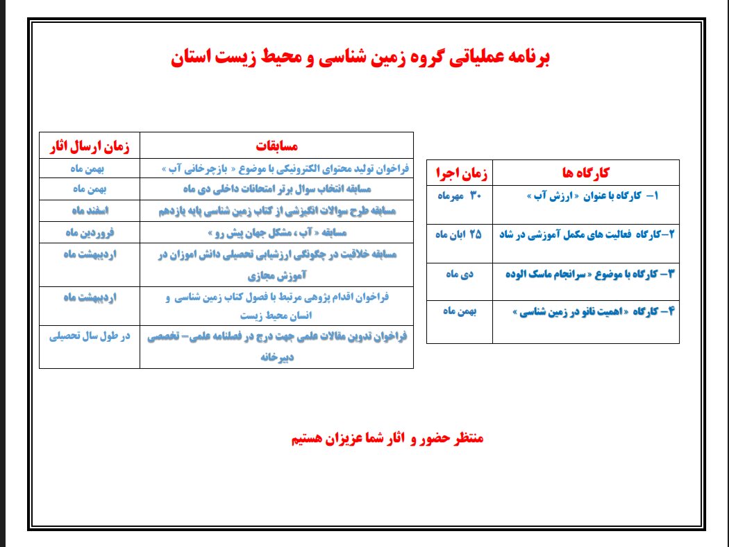 کارگاه ارزش اب ( محیط زیست) ساعت 11 صبح